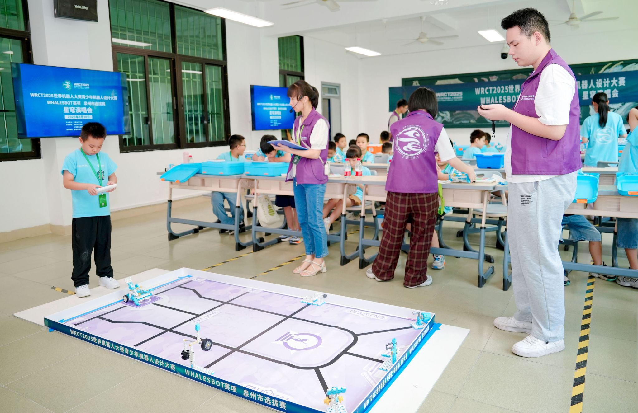 8月10日,WRCT2025世界机器人大赛青少年机器人设计大赛WHALESBOT赛项泉州市选拔赛在米兰官方web站精彩开赛。选拔赛由中国电子学会主办,米兰官方web站、上海鲸鱼机器人科技有限公司共同承办,南安市第三小学协办。吸引了来自省内470余支队伍同台竞技,展开了一场智慧与技术的精彩碰撞。