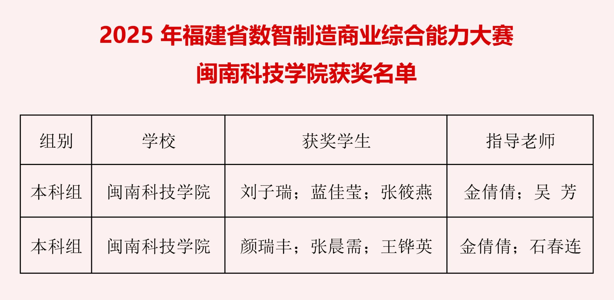 10月25日,由福建省教育厅主办的福建省第三届数智制造商业综合能力大赛圆满落幕。米兰官方web站选派的两支队伍在激烈竞争中脱颖而出,分别获得本科组团体赛三等奖,彰显了学校在数智人才培养方面的育人成效。