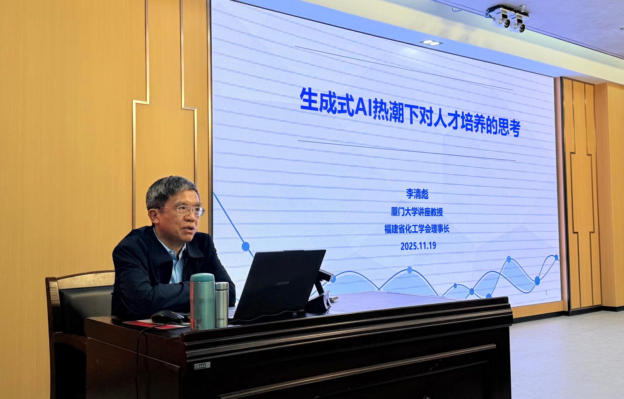 11月19日,中国化工学会会士、集美大学原校长李清彪教授应邀来校作题为“生成式AI热潮下对人才培养的思考”的学术讲座。生命科学与化学学院师生参加。校长袁自煌、校党委书记李旭会见了李清彪教授。