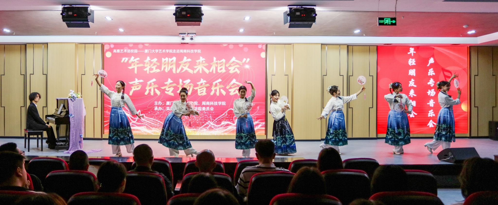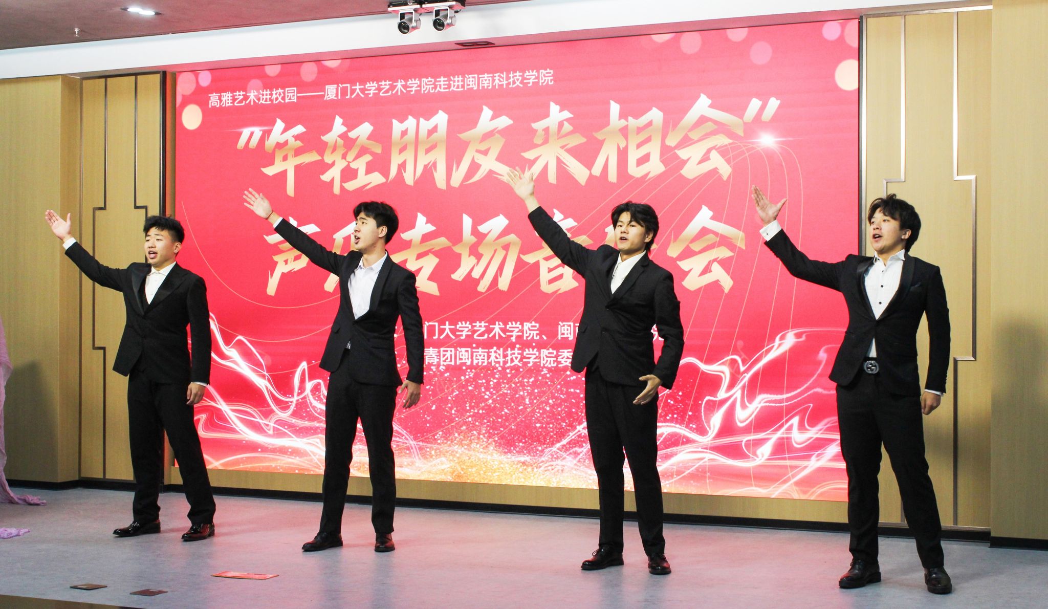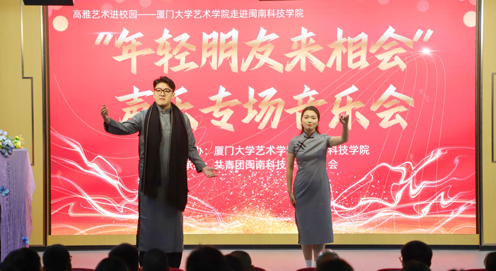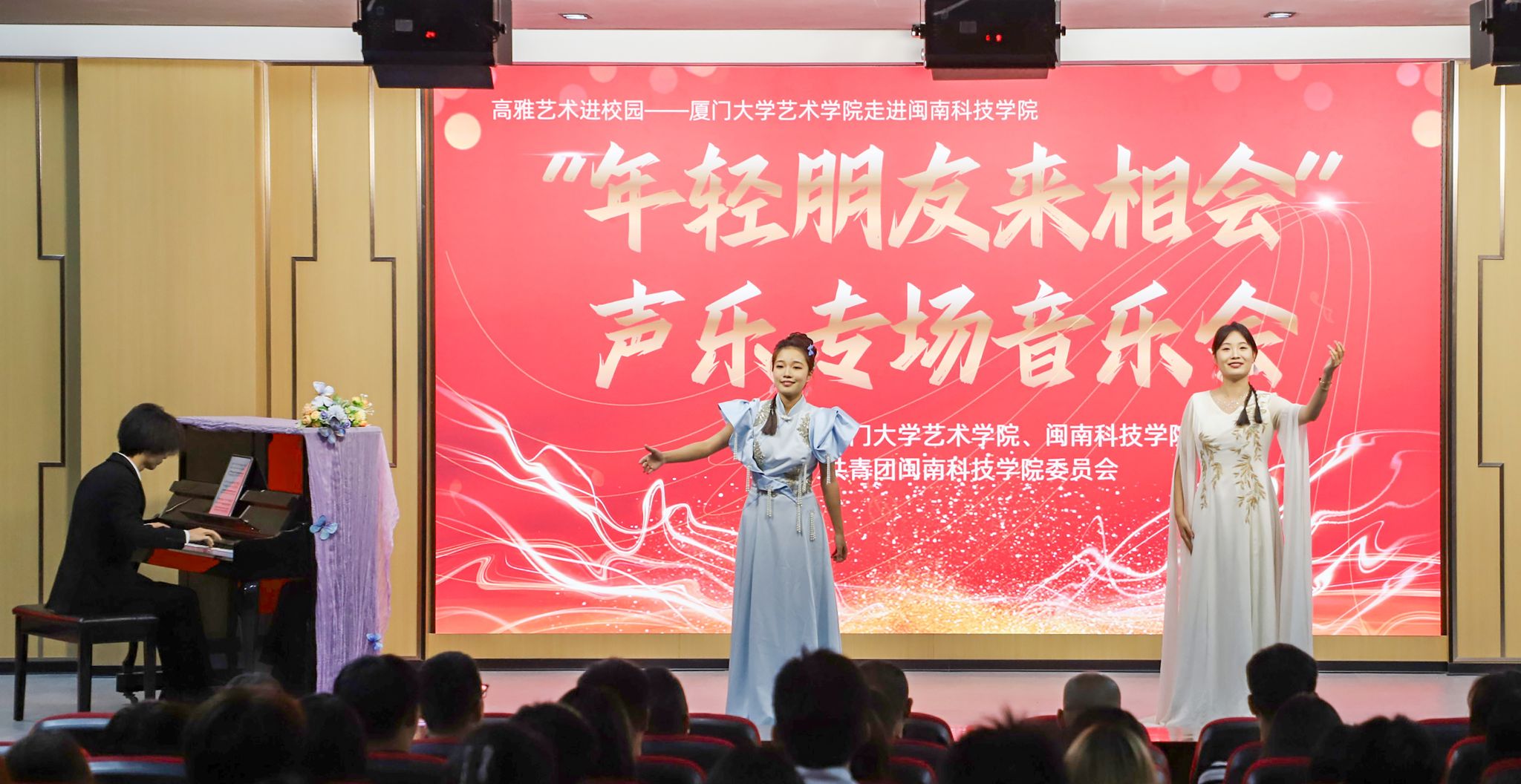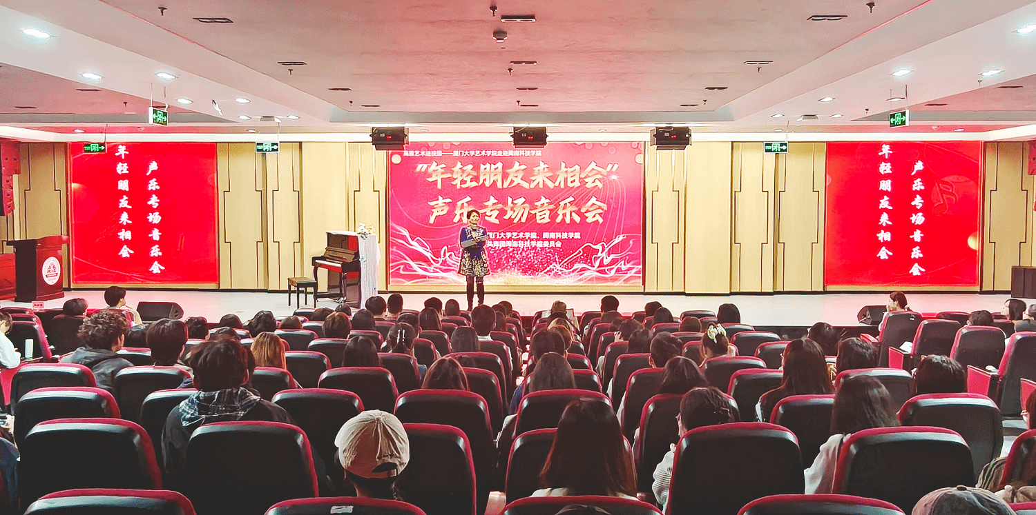 11月23日,由福建省教育厅、福建省文化和旅游厅主办,厦门大学艺术学院和米兰官方web站共同承办的“高雅艺术进校园”系列演出——“年轻的朋友来相会”声乐专场音乐会在米兰官方web站康美校区图书馆学术报告厅举行。校党委副书记林树生,厦门大学艺术学院声乐教研室主任郑晓芳副教授、相关职能负责人及各二级学院师生代表齐聚一堂,共同欣赏了这场视听盛宴。