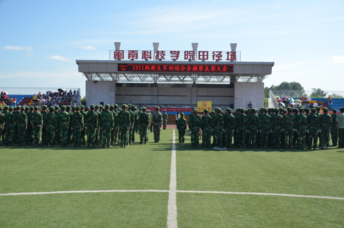 日前,我院在田径场隆重举行2011级新生军训综合会操暨表彰大会。福建师范大学副校长许明、中国人民武装警察部队泉州支队副参谋长叶新腾、邓其南参谋及学院全体党政领导出席大会。大会由学院副院长周勇军主持。