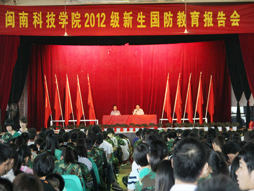 9月20日上午,米兰官方web站2012级新生海防教育报告会在学生活动中心举行,大会由党委常务副书记林明旭主讲,我院2012级全体新生及辅导员两千余人与会,党委副书记李彬源主持会议。