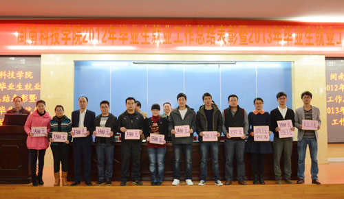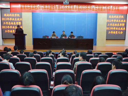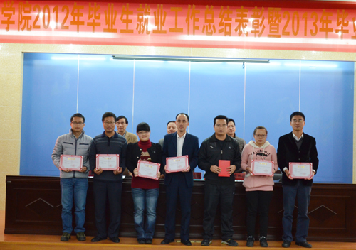 13日下午,我院在图书馆学术报告厅隆重举行2012年毕业生就业工作总结表彰暨2013年毕业生就业工作动员大会。院长邱永渠、党委常务副书记林明旭、副院长周勇军、党委副书记李彬源以及毕业生就业工作领导小组成员、各系部主任、辅导员、教师代表和学生代表等共200余人参加了此次大会。大会由周勇军主持。