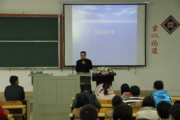 12月18日,“米兰(中国)”邀请福建高科日化有限公司研发经理苏毅生在菲华教学楼C#102作了题为“化妆品开发”的讲座。