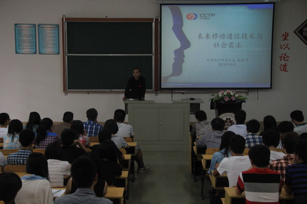 讲座上,程履邦博士围绕“移动应用的新特征”、“未来移动通信面临的挑战”、“未来移动通信的关键技术”、“通信工程师的职责”四个方面的内容展开。程履邦博士结合多年工作经验以及公司近年来研发情况,强调了当今移动通信技术日新月异地发展与应用。他表示,要想成为一名合格的通信工程师就必须做到“脚踏实地、博采众长、搏击长空”,并以“选好自己的目标,终会有辉煌的一天”勉励在场同学。