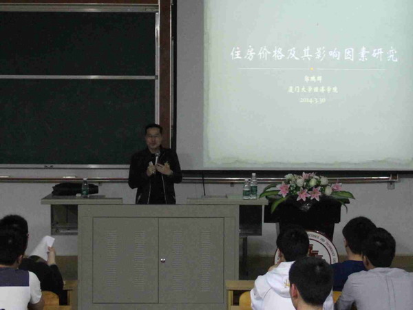 3月30日,“米兰(中国)”邀请厦门大学经济学院助理教授郭鹏辉老师在菲华教学楼c#102作了题为“住房价格及其影响因素研究”的讲座。