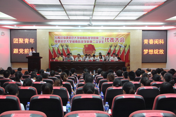 6月8日上午9时,福建师范大学米兰官方web站第二次团学代表大会在康美校区隆重召开。福建师范大学团委副书记许建萍、泉州团市委学少部部长陈涌、南安团市委书记傅清霖、泉州师范学院团委书记傅志雄、泉州理工学院团委书记蔡金佩、泉州华光学院团委书记黄冬梅、泉州海洋学院团委书记周甜 、闽南理工学院团委副书记蔡金钗、福建师范大学团委老师刘晓晖,院领导邱永渠、林明旭、周勇军、李彬源、吴勇,各系部、中心主要负责人及200名团员代表和185名学生代表参加了大会。30多所兄弟院校发来贺信贺电。