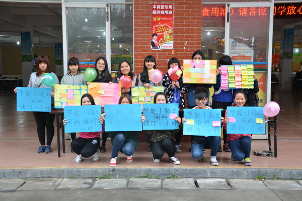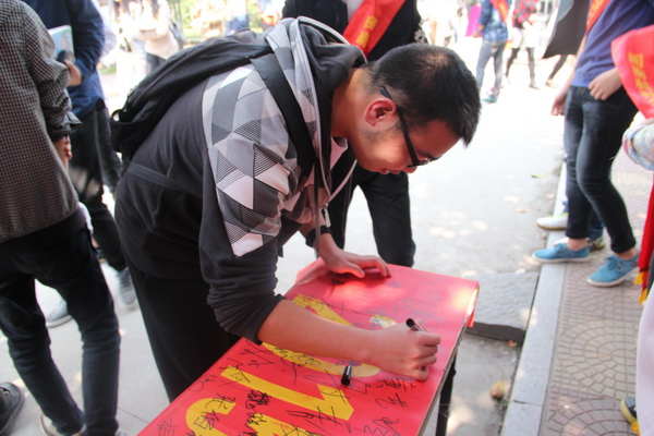 18日,青年志愿者协会在康美校区社区门口以签名承诺的形式“弘扬新风尚,传播正能量”。20日,青年志愿者协会开展“爱心纸工程”活动,志愿者们收集废旧的瓶子、旧衣服和书籍,将获得的善款捐给需要帮助的人。
