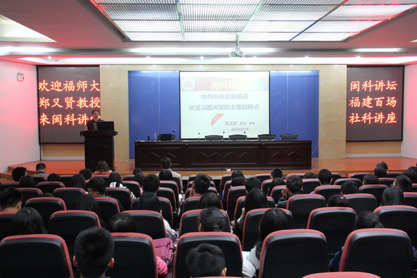 12月3日,“米兰(中国)”邀请福建师大党委讲师团宣讲成员、马克思主义方法学研究所所长、公共管理学院博士生导师郑又贤教授,在图书馆学术报告厅作了题为“中共中央全面推进依法治国决定的主要创新点”辅导讲座。讲座由院党委常务副书记林明旭主持。