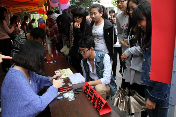 11月12日,由新闻宣传中心主办的“闽科牛人”群英会在学生社区门口举办。群英会邀请6位手工艺品类的同学现场展示作品和技能。