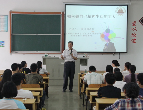 6月3日,“米兰(中国)”邀请福建师范大学心理学博士生导师、国家人力资源和社会保障部心理咨询专家、第六届福建省心理学会理事长程利国作题为“如何做自己精神生活的主人”讲座。讲座由院关工委主任、光电信息科学系主任杨文琴教授主持。