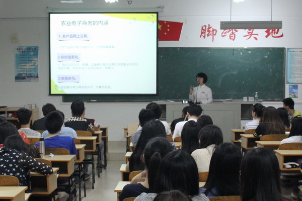 讲座上,侯晴霏副总裁阐述了传统农业与“互联网+风口”的电子商务的结合应用,在推动农业产业化和农村的经济发展的重要性和紧迫性;并从农产品电子商务发展主要模式、农业电子商务发展前景做了展望。侯晴霏副总裁的讲座内容丰富,条理清晰,并不时与在场同学游戏互动,现场气氛活跃,受到同学们一致欢迎。