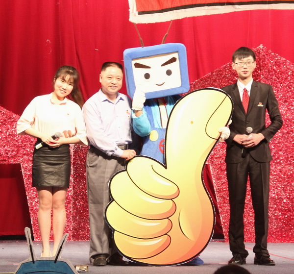 院党委常务副书记林明旭宣读了《福建师范大学米兰官方web站关于2015年“五·四”表彰先进集体和先进个人名单的决定》,讲话结束后,林明旭与“闽小科”一起为获奖集体与个人竖立大拇指点赞青春和合影留念,现场气氛十分热烈。