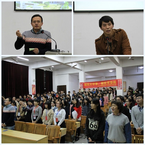 6日,2014级信息管理与信息系统专业举办“诚待你我,善对他人”主题道德讲堂活动。活动围绕“述一个道理”、“观一部短片”、“ 讲一段故事”、“唱一首歌”、“发一条微博”、“宣一则期望”、“听一番感悟”、“签一个名字”八个环节展开。活动在一首“友善”为主题的诗歌中“述一个道理”开场;在“观一部短片”环节中,以一位流浪汉被善待的感人故事,宣传道德正能量;在“讲一段故事”环节中,同学们踊跃发言,讲述自己身边被善待的生活情节;在“唱一首歌”环节后,同学们通过“发一条微博”发表自己对“善待”的看法,并承诺:“无论是朋友还是陌生人遭到了危险,我们都要大胆地承担下来,尽力帮助人家,不要过多考虑自己要付出多大代价。”在“听一番感悟”中,经济管理系副主任陈晓川分享了善待他人,也得到他人善待的故事,他希望同学们终生铭记“诚待你我,善对他人”这个承诺,以真诚和善良对待身边的人和事,以“诚待你我,善待他人”的态度与人交往,在学习生活中形成良好融洽的人际关系,在实践中弘扬道德新风尚,传播社会正能量。