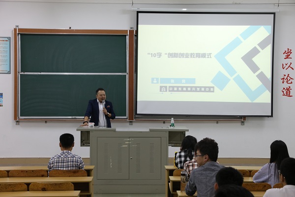 讲座上,张亮总经理详细解析了大学生学习创新创业相关问题,重点介绍了学、测、训、考、证、赛、服、孵、研、分“10字”创新创业教育模式,并为同学们参加各项创新创业大赛提出指导意见。