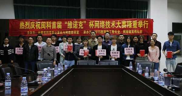 4月12日,计算机科学系举办首届“维诺克杯”网络精英大赛颁奖典礼,院领导吴勇莅临现场指导并颁奖。
