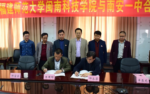 3月29日,我院与南安一中举行合作共建签约仪式,南安市教育局副局长卓亚龙、南安一中校长陈国璋、我院院长邱永渠,及部分教师代表出席了签约仪式。