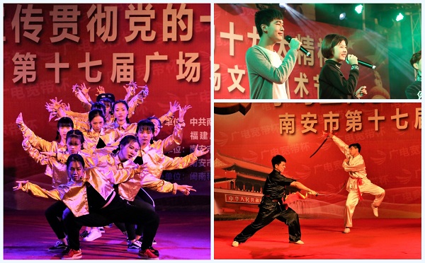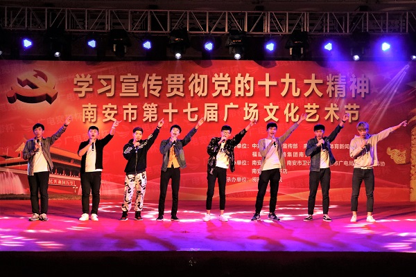 南安市第十七届广场文化艺术节由南安市委宣传部、市文体旅局等联合主办,以“学习宣传贯彻党的十九大精神”为主题,活动持续至20日。我院承办此次活动的专场演出,创新了学习宣传贯彻党的十九大精神的活动形式,展示了我院大学生积极进取、奋勇拼搏的精神风貌,以及对党的十九大胜利召开的喜悦之情,搭建了服务南安经济社会发展、丰富精神文化生活、繁荣文化发展的良好平台。