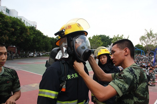 此次活动旨在调动新生们学习消防安全知识的积极性,加强自身抵御火灾和自防自救能力,进一步丰富了军训内容,为2017级新生带去校园消防知识第一课。