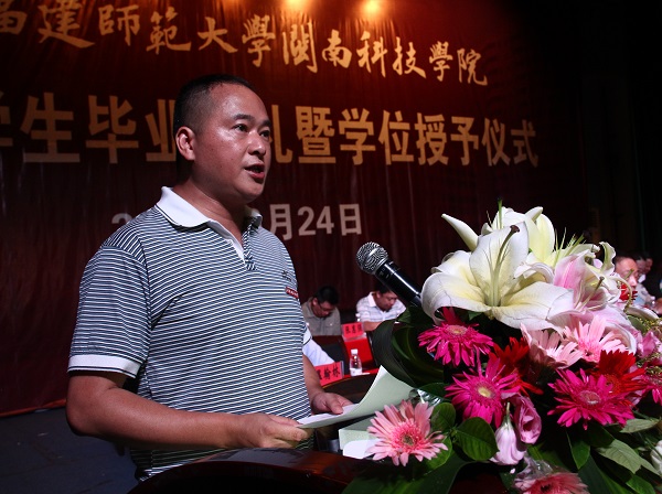 教师代表孙文缘老师、毕业生代表2013级英语专业陈欣萌同学、毕业生家长代表林斌同志、校友代表2003级信息管理与信息系统专业温翰林先后上台发言。