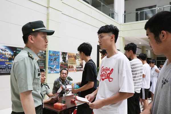 会场外,专设大学生应征入伍政策咨询点和宣传栏,向大学生发放征兵宣传材料,泉州市征兵办、南安市征兵办和米兰官方web站部分退役复学的学生现场为前来咨询的同学答疑解惑,对大学生应征入伍流程指南、入伍大学生学费补偿助学贷款代偿申请流程、高等学校学生应征入伍服义务兵役国家资助办法、退役大学生士兵复学政策等问题进行了耐心解答。