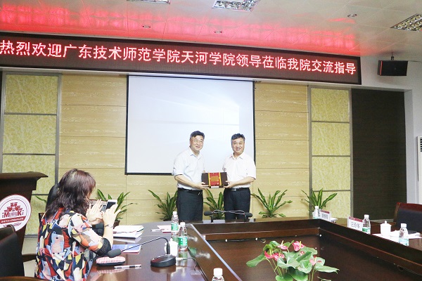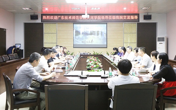 张杰副院长代表学院对广东技术师范学院天河学院莅临交流指导表示欢迎,并简要介绍了我院办学历史、办学特色及基本概况,对转设评估工作提出诸多建议。吴勇副院长从对照指标、材料建设、考察路线、应急预案等方面作了补充介绍。