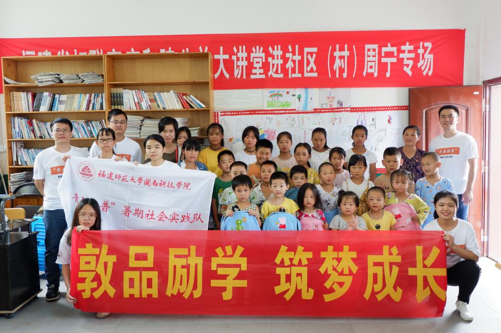 7月28—8月5日,人文艺术系11名学生组成的“青春推普”暑期社会实践队,赴宁德市周宁县萌底村、福安市下白石镇等地开展“敦品励学,筑梦成长”主题暑期社会实践活动,引导广大青年学生在社会实践中受教育、长才干、作贡献。