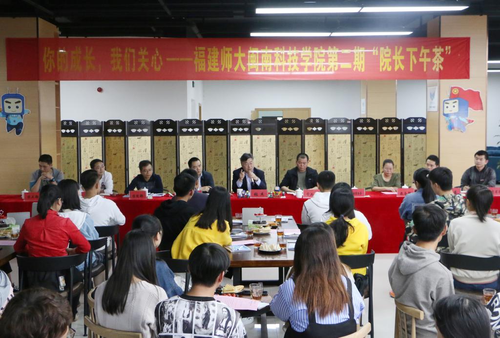“康美校区大门口能否设置红绿灯和减速带?”“食堂饭菜种类能否丰富一点?”“图书馆藏书数量能不能增多,与专业需求更匹配?”……11月14日下午,学院图书馆四楼研讨室正上演一场别开生面的“院长下午茶”活动,学院党委副书记、副院长(主持工作)张杰与各二级学院学生代表和提案代表面对面,共话闽科发展。