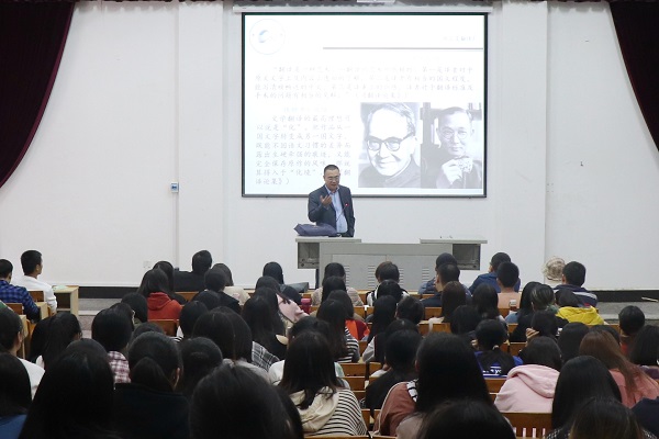 讲座上,杨士焯教授详细解析如何将翻译做到“意美”、“音美”、“形美”,分析了词汇的多义性、句法的译法、中西方翻译中不同文化间的差异。他强调,做好翻译需要练好英语和汉语基本功,不断拓展知识面,希望同学们通过日常学习,多接触不同的学科知识,不断累积,培养良好的英文理解能力和中文表达力,提升翻译水平。