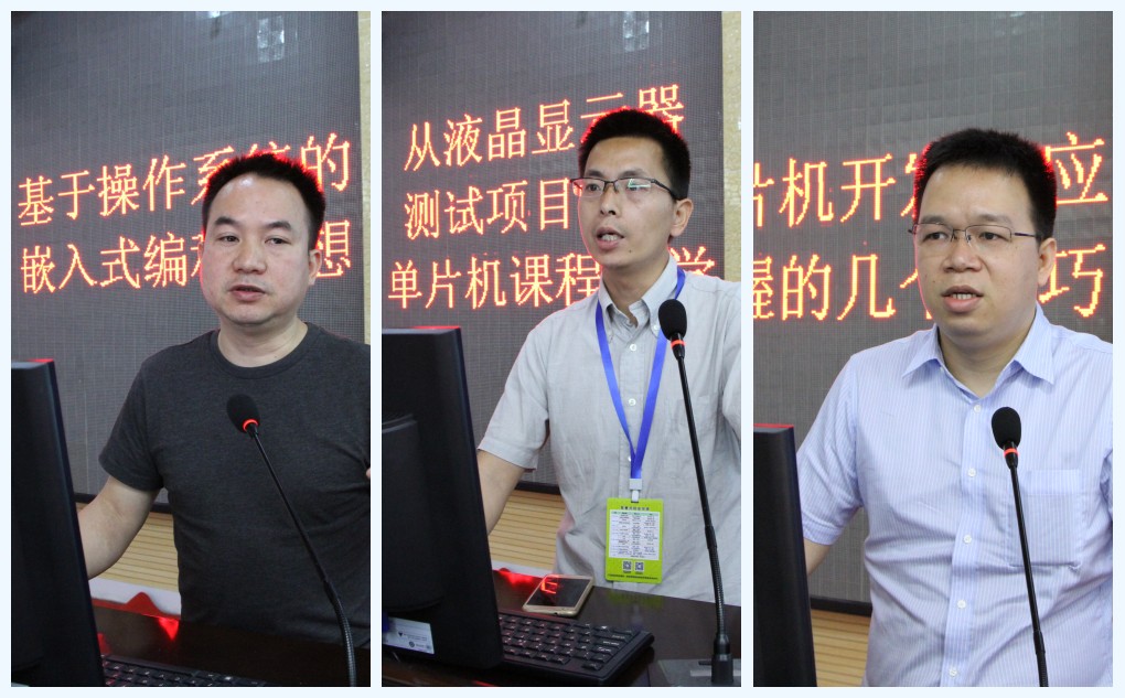 三位专家分别以《基于操作系统的嵌入式编程思想》《从液晶显示器测试项目探讨单片机课程教学》《单片机开发中应掌握的几个技巧》为题,结合单片机的课程学习、竞赛实践、应用设计、开发技巧等问题进行阐述,全面介绍嵌入式系统的软/硬件框架、体系结构、嵌入式内核、数据结构与管理、项目实训、及单片机应用。