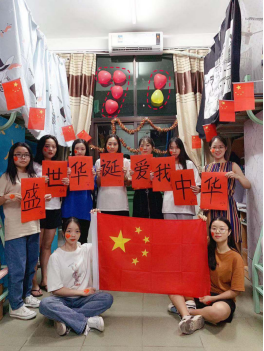 学生在宿舍营造氛围庆祝新中国成立70周年