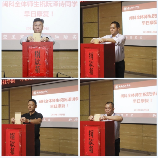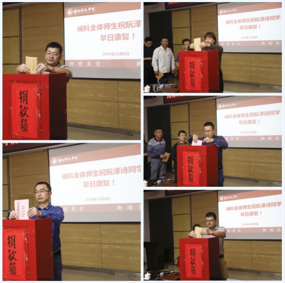 在这次捐款行动中,闽科全体师生踊跃捐款,希望能帮助阮泽诗同学渡过难关、早日康复。“阮泽诗是我们专业的同学,仅仅相处了一个多月就听闻这个不幸的消息,我们都很难过。一方有难,八方支援,希望我们传递的爱心能给阮泽诗同学带去战胜疾病的信心和力量,祝福她早日回到闽科这个温暖的大家庭。”2019级汉语言文学专业学生张语涵说。