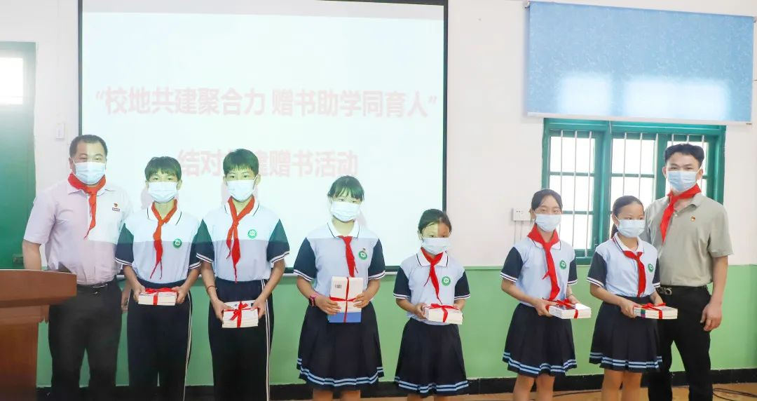 赠书仪式上,南安市东坂小学少先队员代表为参会嘉宾佩戴红领巾,米兰官方web站机关第一党支部、南安市新华书店共同向东坂小学捐赠了600余册少儿图书,并向广大少年儿童致以节日的问候。