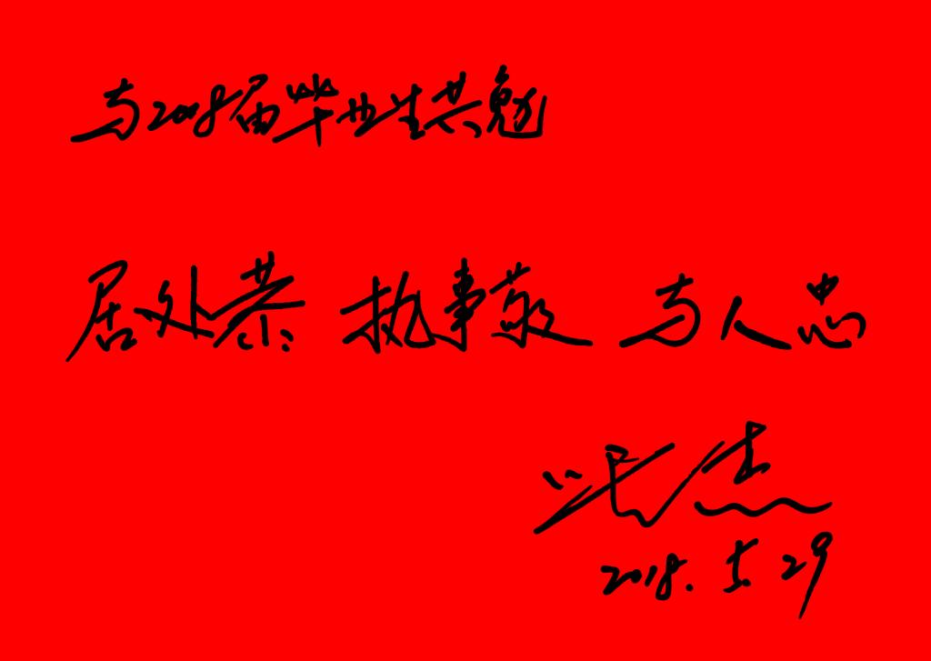 副院长(主持工作)张杰为2018届毕业生寄语题词