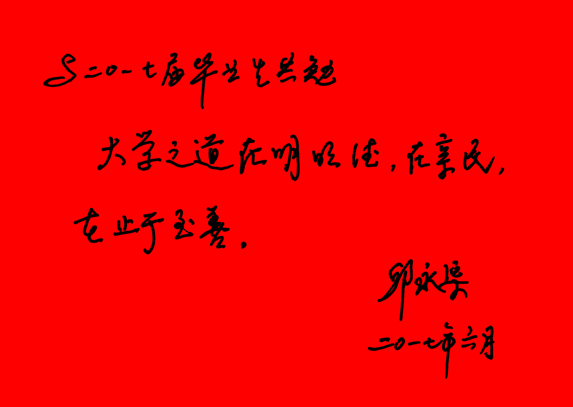 院长邱永渠为2017届毕业生寄语题词